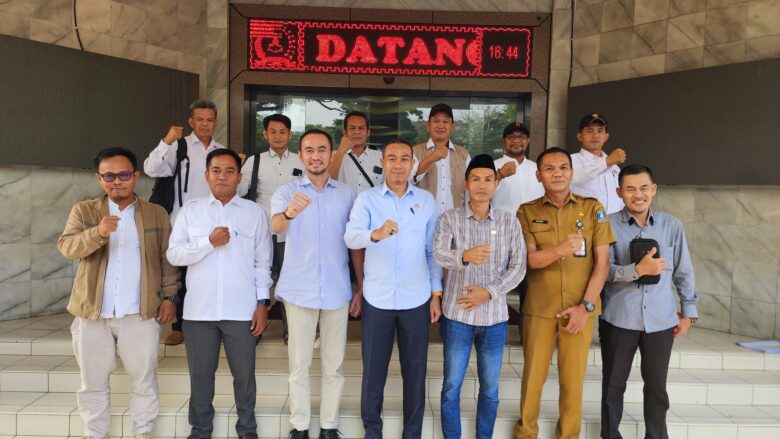 Ketua Komisi III DPRD Kabupaten Serang Supiyanto (tengah) dan Wakilnya Eki Baihaki (tiga dari kiri) foto bersama dengan perwakilan pengurus Kopdes Merah Putih, Selasa, 26 Agustus 2025.