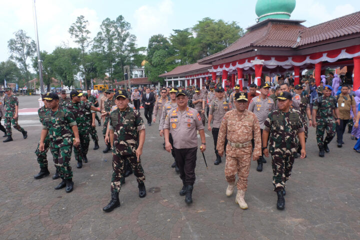 Komandan Jenderal Akademi TNI Letnan Jenderal TNI Raden Sidharta Wisnu Graha dan Kepala Lembaga Pendidikan dan Pelatihan (Lemdiklat) Polri Komjen Chryshnanda Dwilaksana, Gubernur Banten Andra Soni berjalan usai apel Pembukaan Latihan Integrasi Taruna Wreda Nusantara (Latsitarda Nusantara) XLV/2025 di Alun-Alun Barat, Kota Serang, Rabu, 4 Juni 2025.